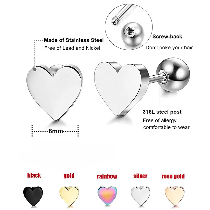 2 шт., женские серьги-гвоздики для пирсинга, из нержавеющей стали