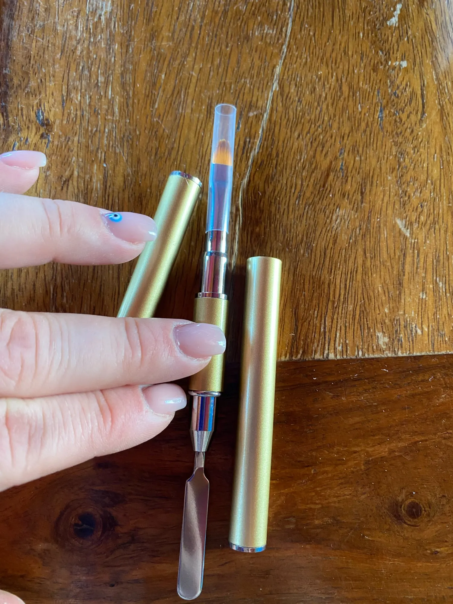 Кисть и металлический инструмент не имеют чашек, чтобы закрыть его и защитить его от повреждений или УФ-излучения. Это своего рода проблема, которая доходит до кисти. Я думал, что, по крайней мере, кисть будет иметь крышку, но нет. Она была защищена только пластиком, прозрачной «клубникой» и трубкой.