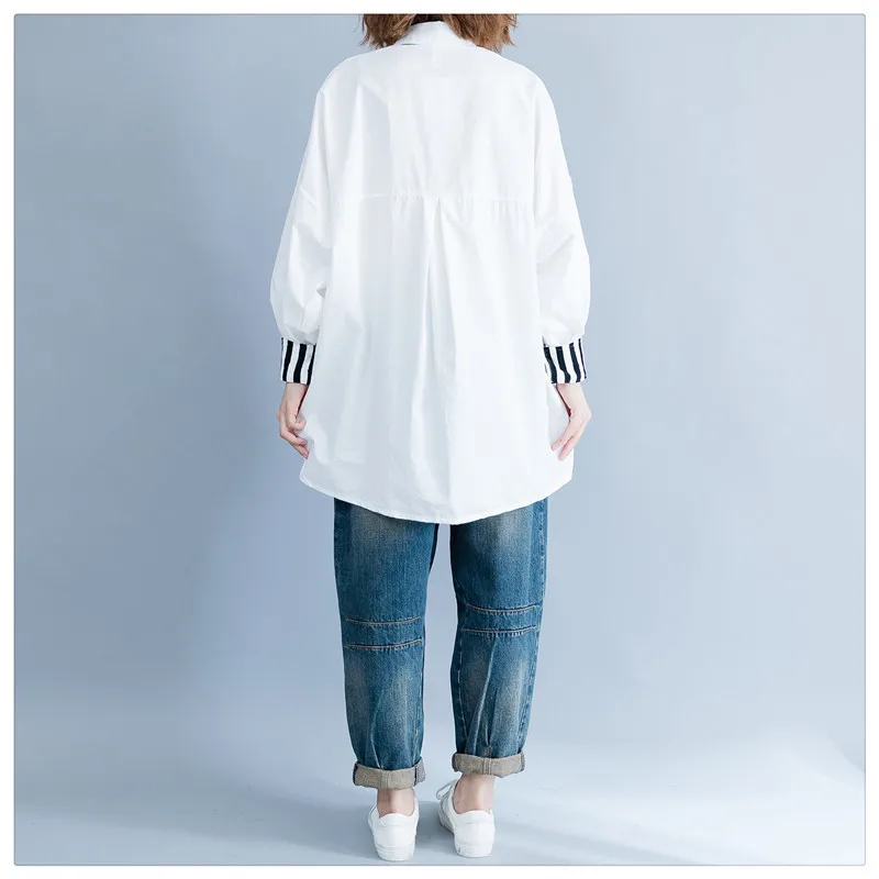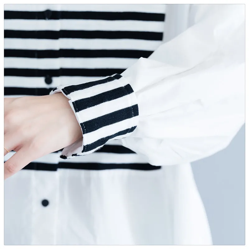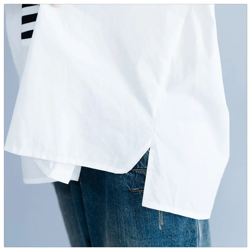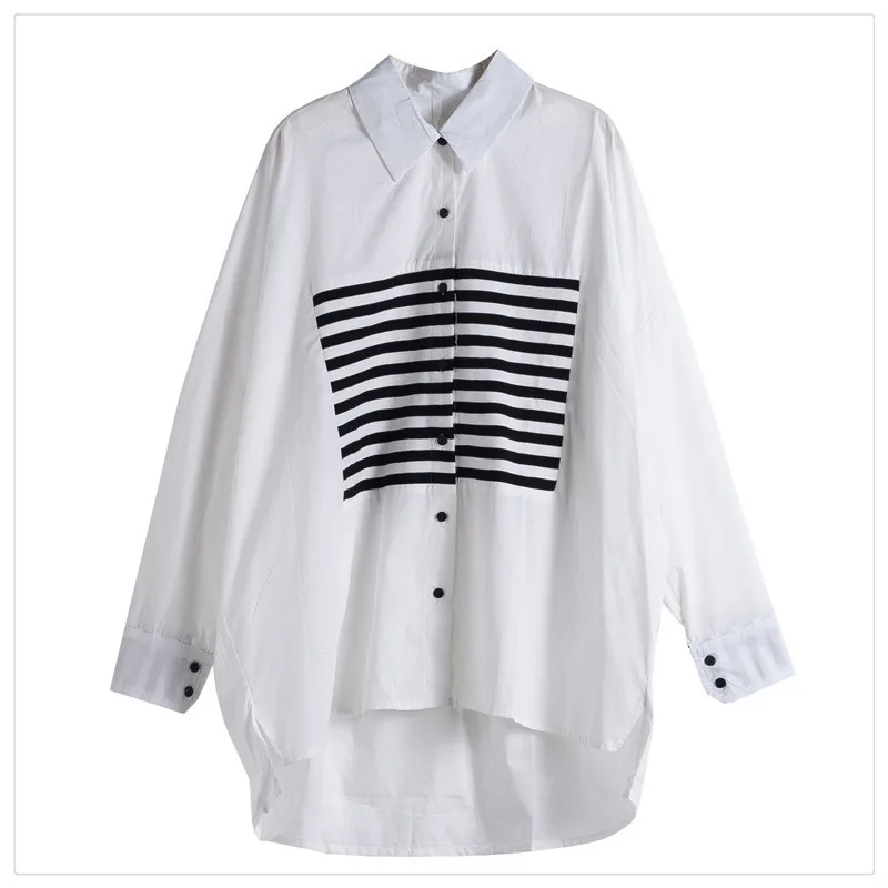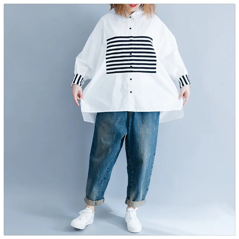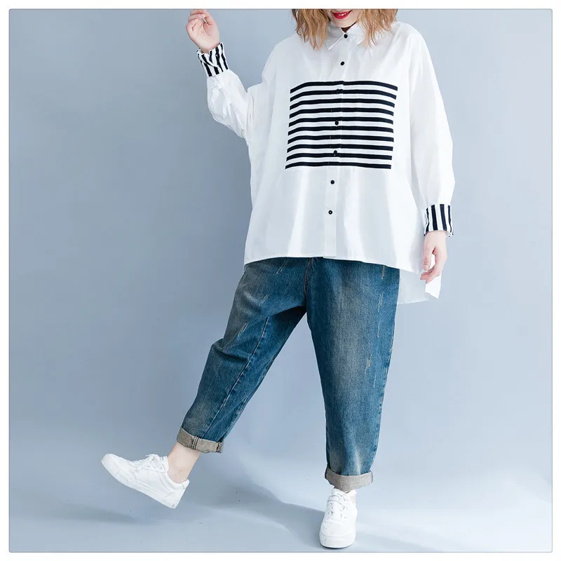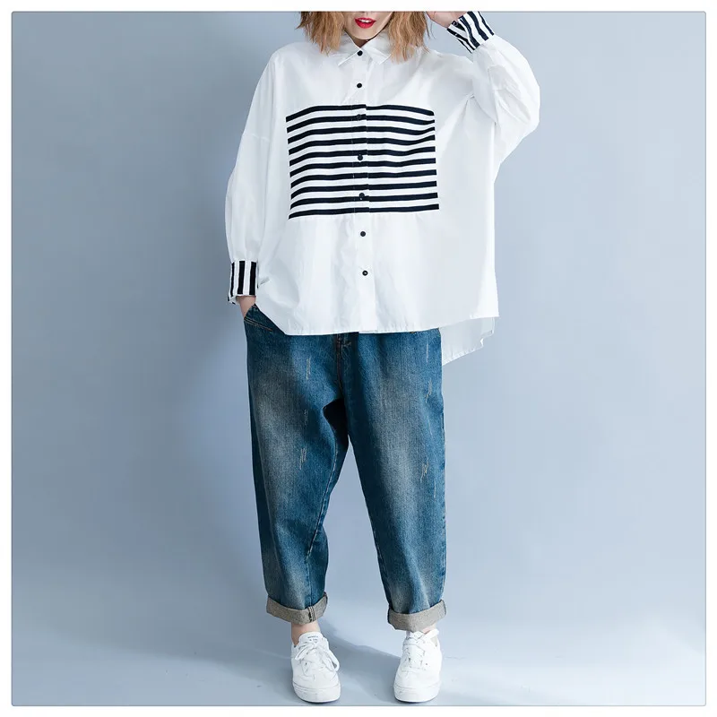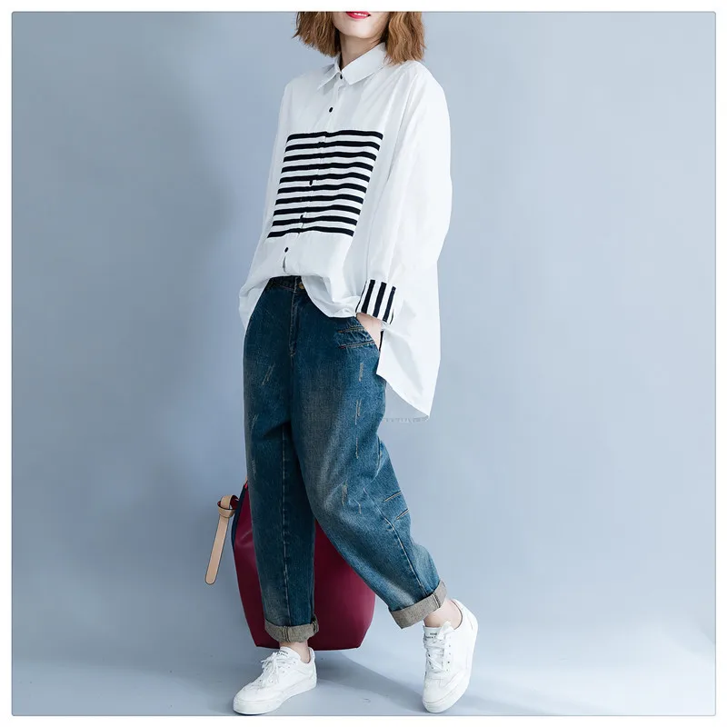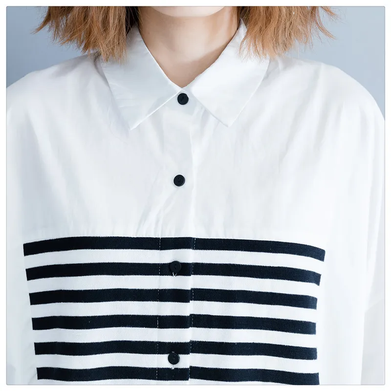 Женская хлопковая блузка DIMANAF, Повседневная Свободная рубашка с длинным рукавом, в полоску, в стиле пэчворк, для осени, 2021