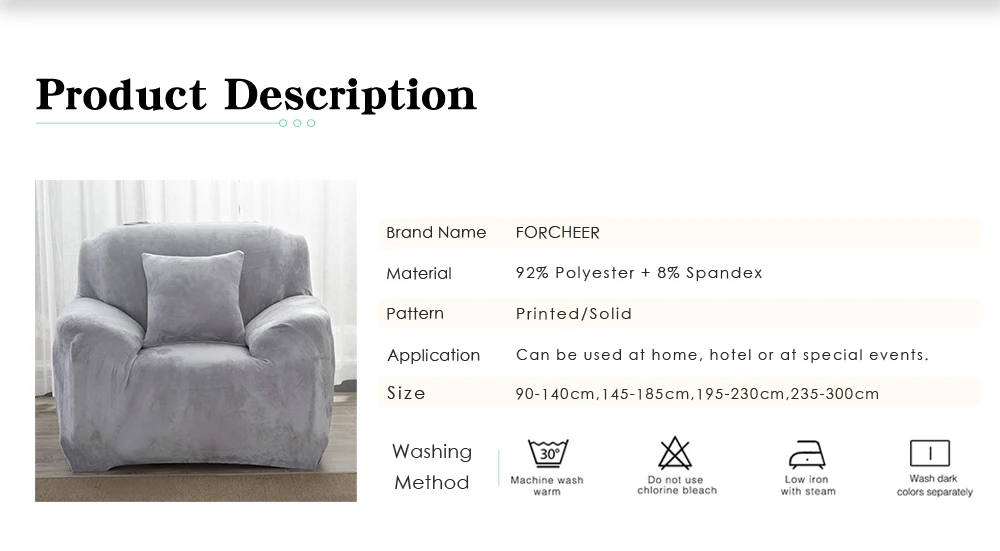 Чехол для дивана, на 1234 мест, однотонный, плюшевый