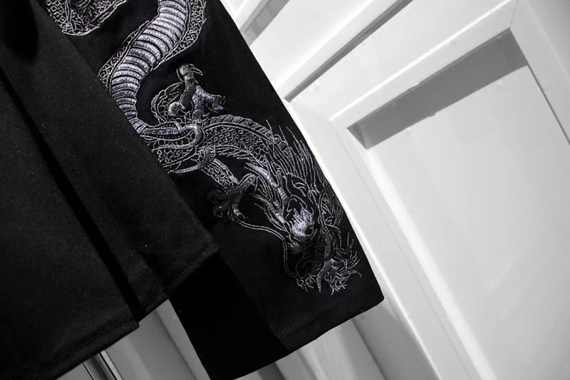 Худи женское в японском стиле Харадзюку, укороченный топ с вышивкой дракона, Повседневная Уличная одежда, короткий свитшот с ремешком на застежке, черный цвет
