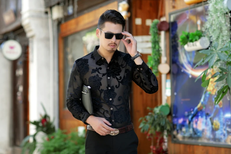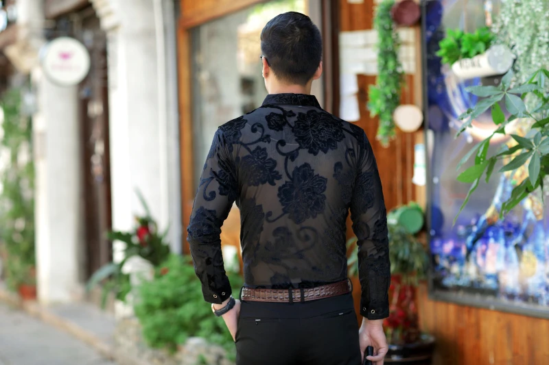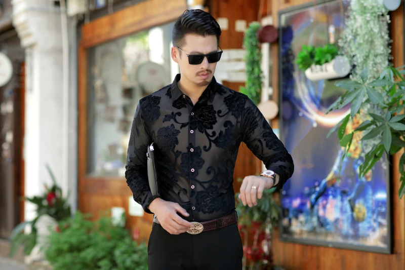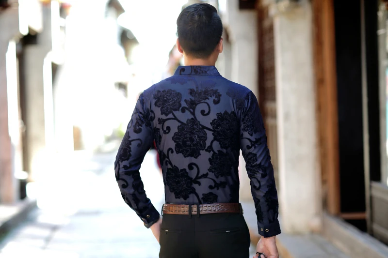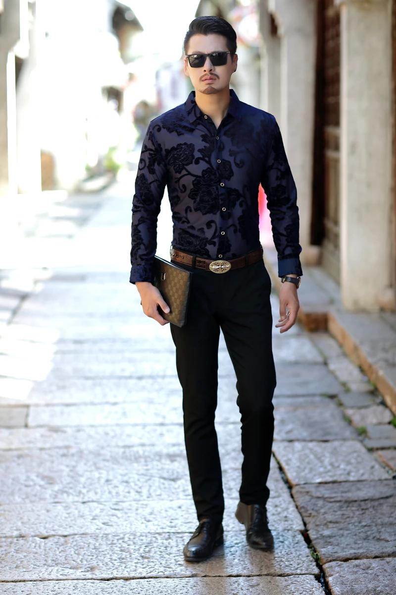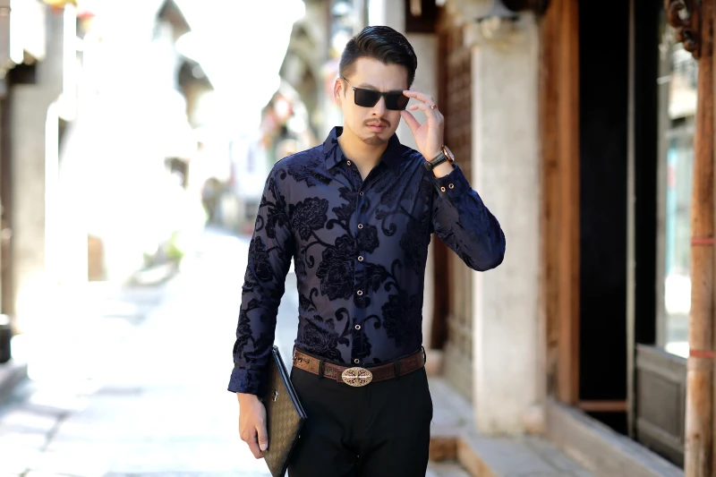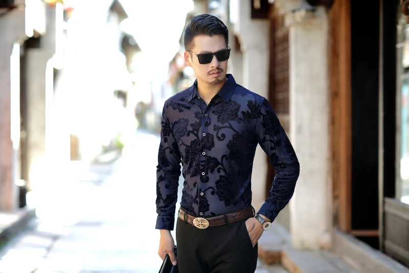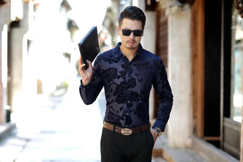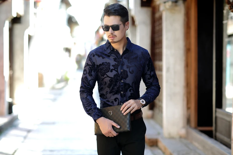 Мужская бархатная рубашка с длинным рукавом, на пуговицах