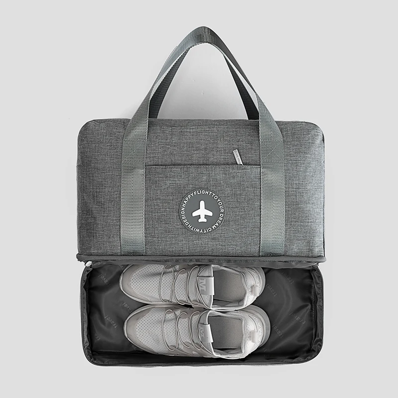 1-Водонепроницаемая ткань, мягкая форма, износостойкая 2-Раздельное хранение обуви, отдельно от основной сумки, чисто и санитарно 3-Удобная ручка - для удобства доступа