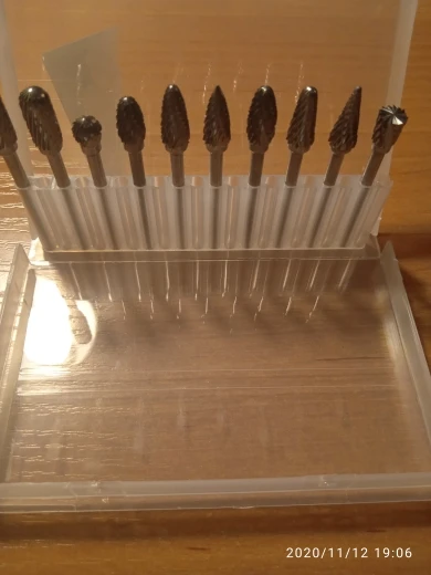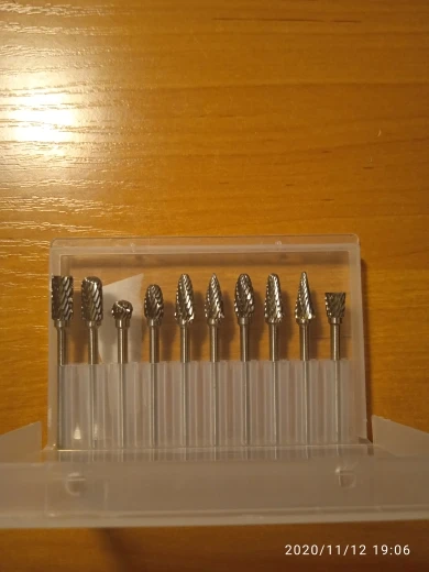 Все как в заказе. Фрезы в специальной пластиковой коробочке, сверлильная головка в отдельной пластиковой коробке. Выглядит все очень аккуратно и качественно. После того, как попробую в работе, напишу. Everything is as in the order. Cutters in a special plastic box, drill head in a separate plastic box. Everything looks very neat and high quality. After I try it, I'll write.