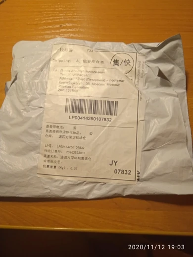 Страна: RU Доставка: Standard Shipping 07.11.2020