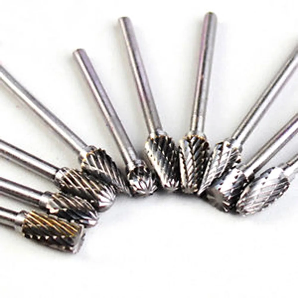 Фреза Вольфрамовая, карбидная, с двойным хвостовиком 3 мм, 10 шт.