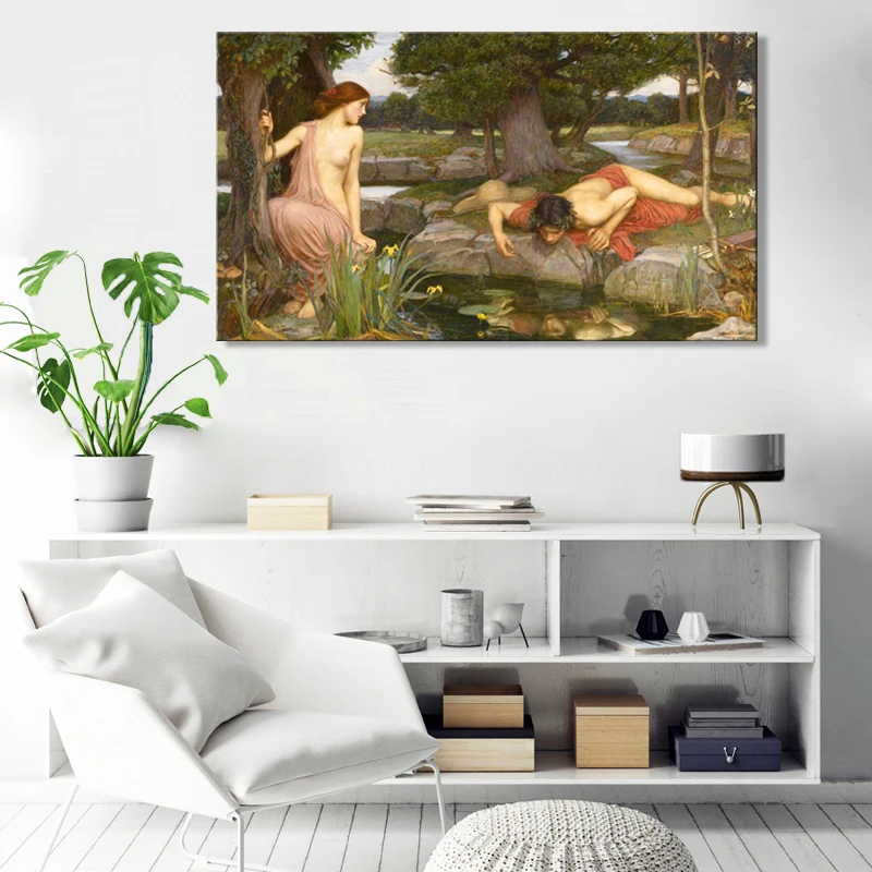 Плакаты и принты John William Waterhouse Эхо и нарцисс, настенное художественное полотно, декоративная картина для стены гостиной