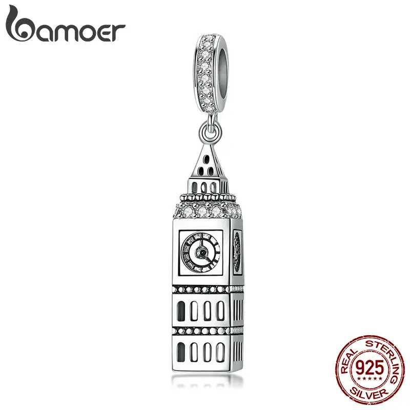 BAMOER новая коллекция, подвески в виде Биг-Бена в британском стиле из стерлингового серебра с подвеской, очаровательные браслеты для изготовления ювелирных украшений, SCC868