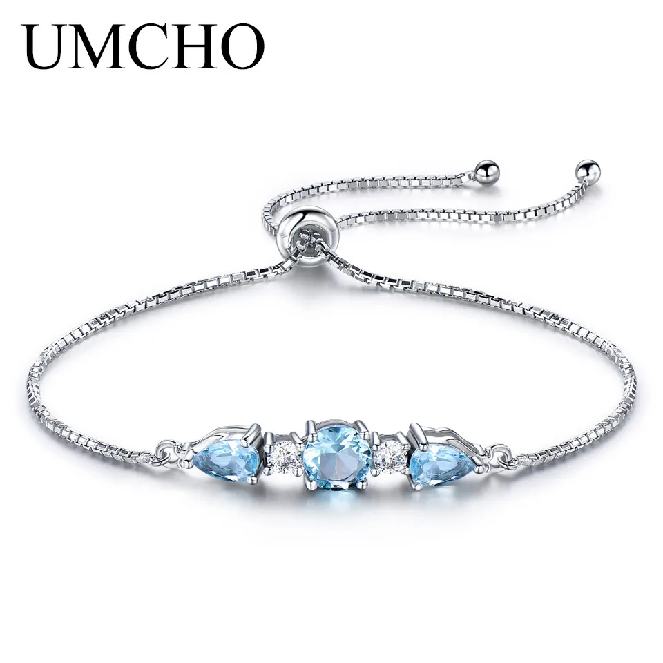 Женские браслеты UMCHO Blue Spinel, ювелирные изделия из стерлингов...
