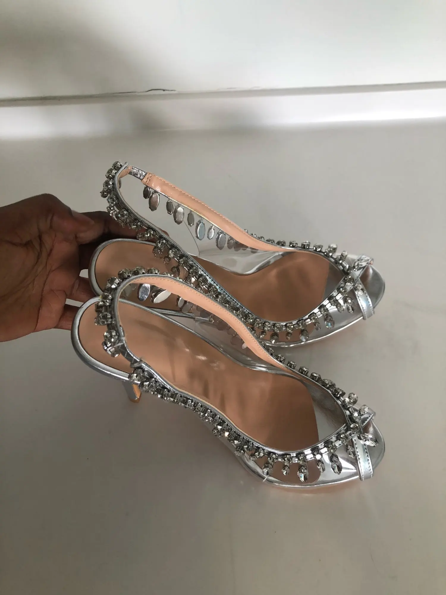 Прозрачные сандалии из лакированной кожи с острым носком; Женские туфли с блестящими стразами; Элегантная Свадебная обувь