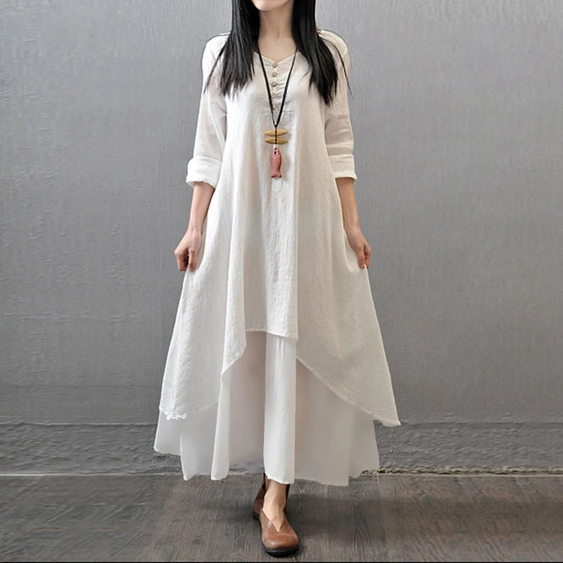 Этническая 5XL плюс размер с длинным рукавом осеннее платье женское с v-образным вырезом 2 слоя асимметричное повседневное Макси длинное платье женское летнее платье 2019