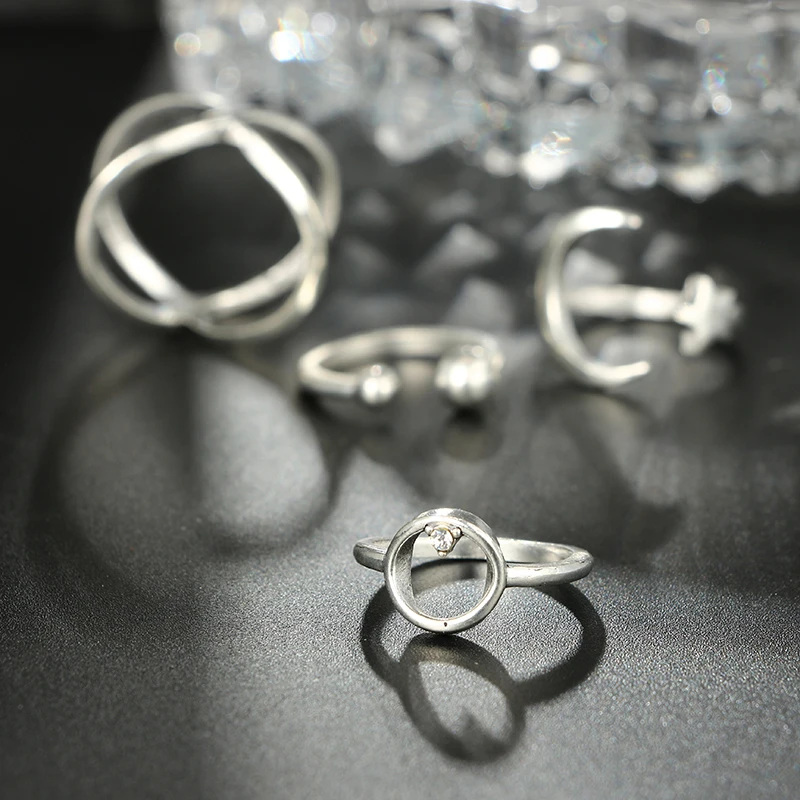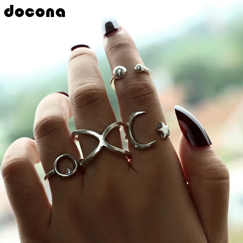 Кольцо женское Docona, богемное, регулируемое, серебристого цвета, с Луной и звездой