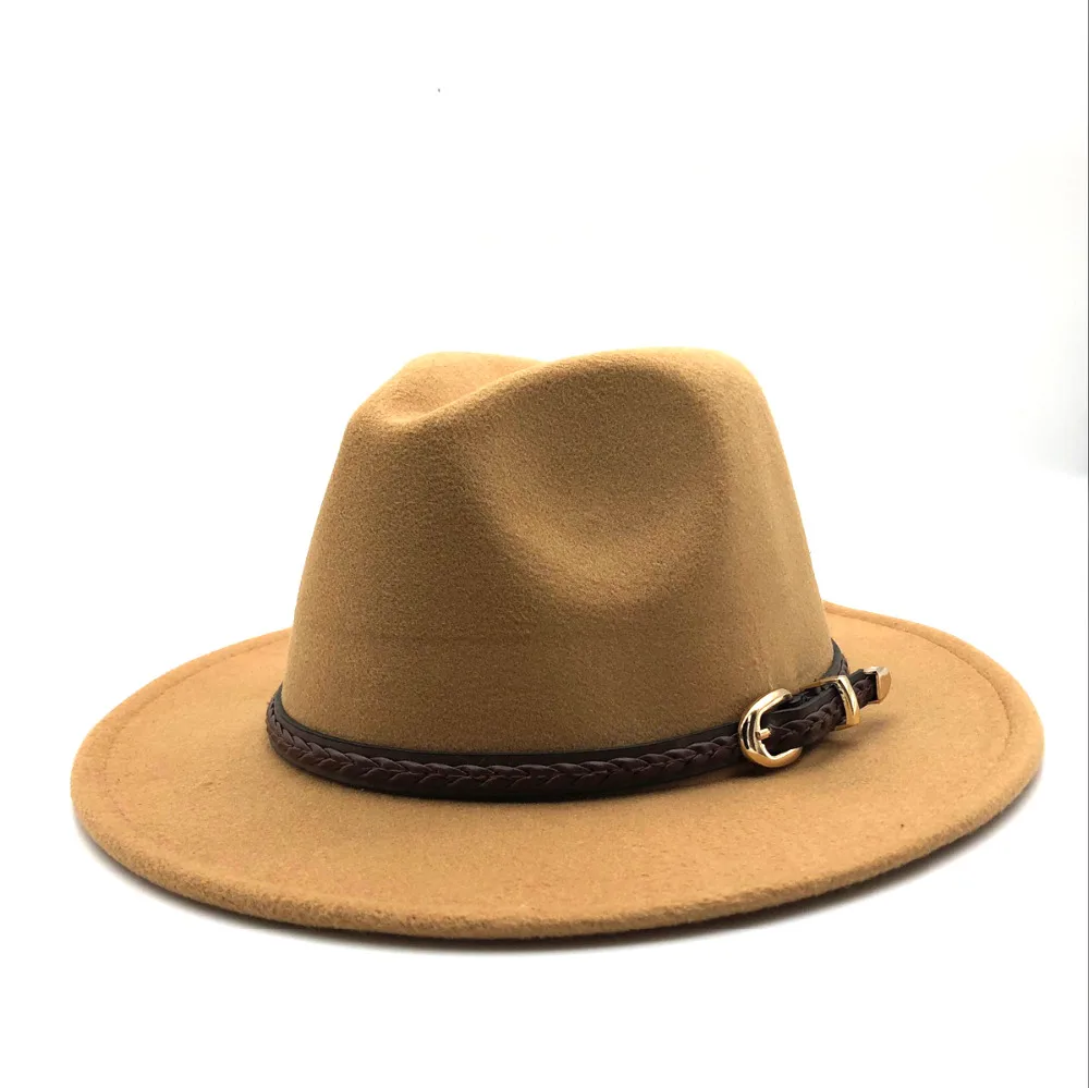 2019 Новый зима-осень шерсть Для женщин Для мужчин ремень женские фетровые Топ В Стиле Джаз одежда в европейском и американском стиле круглые шапки котелок Шапки 55-58 см
