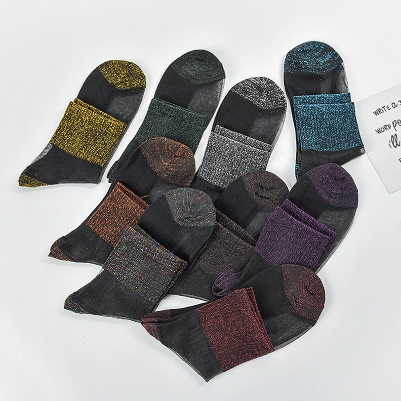 2018 Новые поступления женские модные летние нейлоновые тонкие прозрачные блестящие стеклянные серии женские трендовые очаровательные кружевные носки с кристаллами G103