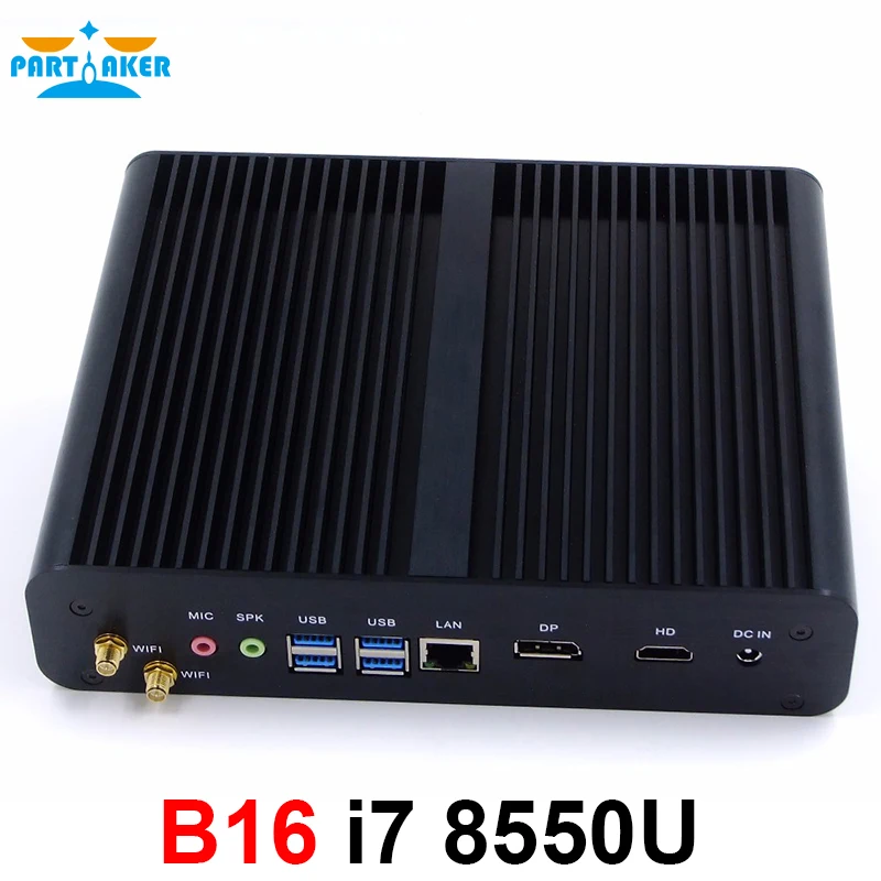 Мини-ПК 8 поколения, Windows 10, Intel Core i7 8550U, четырехъядерный, 4,0 ГГц, безвентиляторный, 4K HTPC, Intel UHD Graphics 620, Wi-Fi