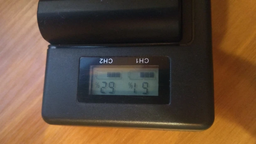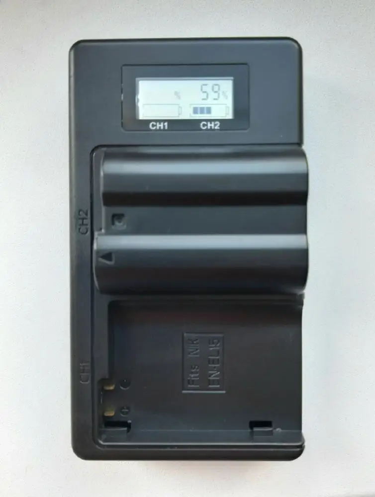 Итак по акумам и зарядке. Акумы заявлены 2500mAh против оригинального 1900mAh. фотоаппарат d7200 их видит, определил: фото-0, новые-100‰. Зарядное работает от любого 5v БП ( и током >1А)или повербанка. Оригиналтный акум тоже заряжает. Показывает проценты зарядки. Кстати на фото первый сверху = оригинальный акум, для сравнения. В дополнении выложу тесты по ёмкости аккумов, так же в сравнении с оригинальным.
