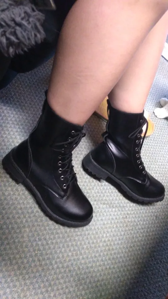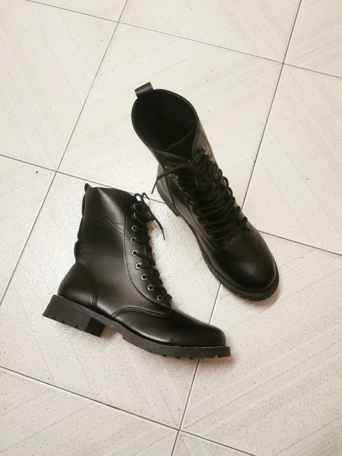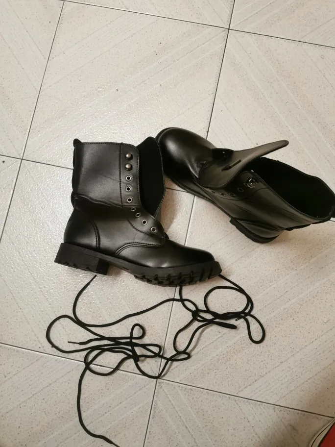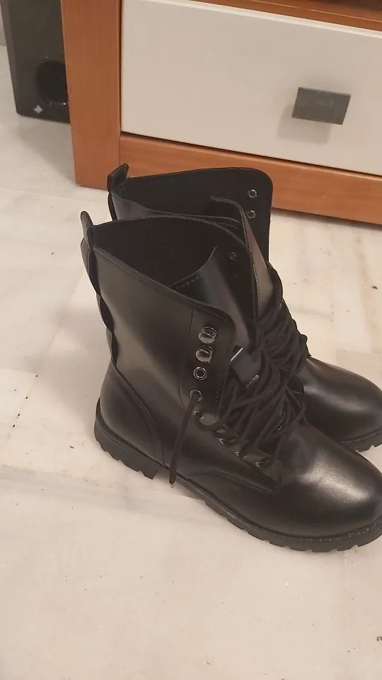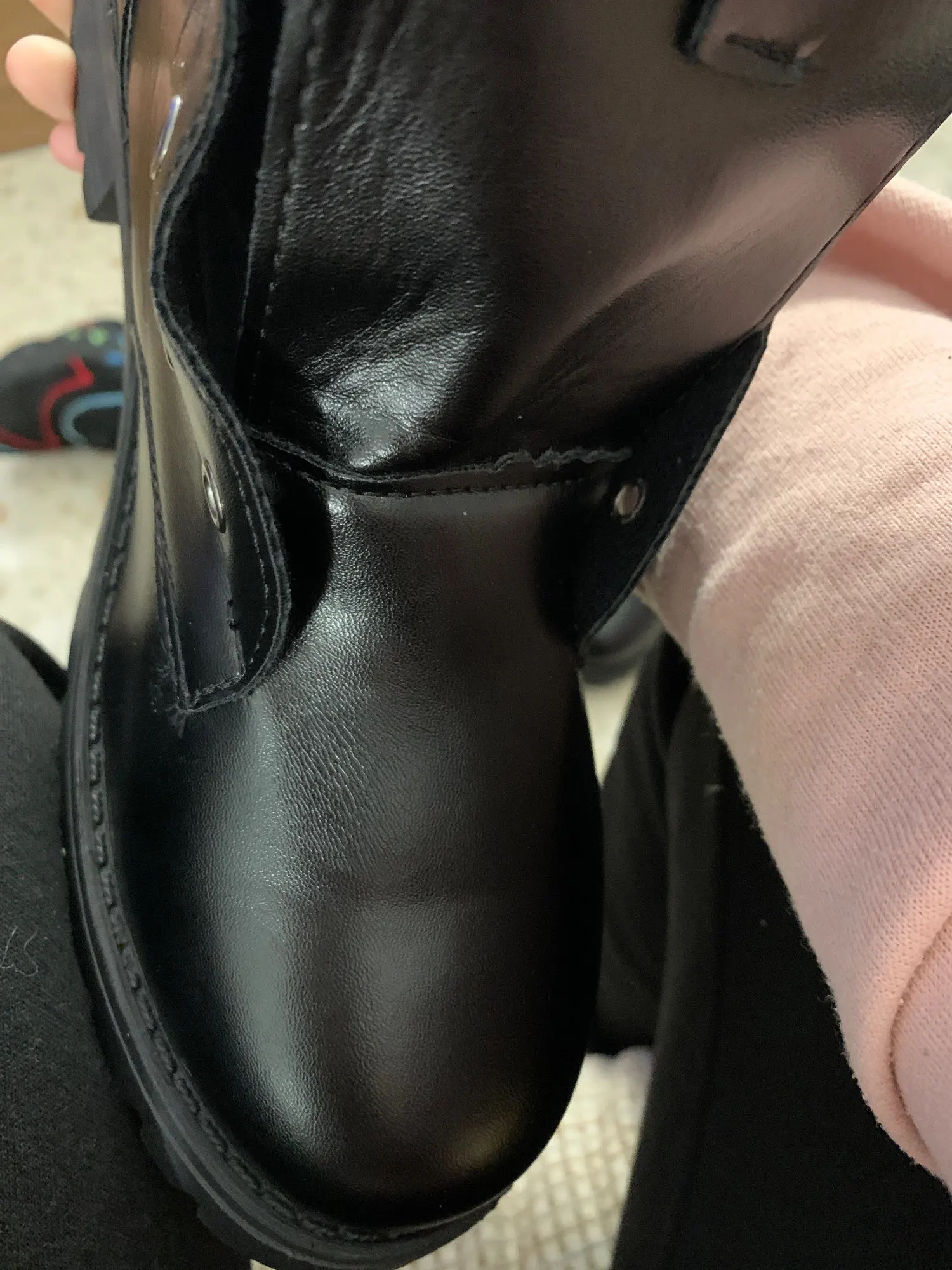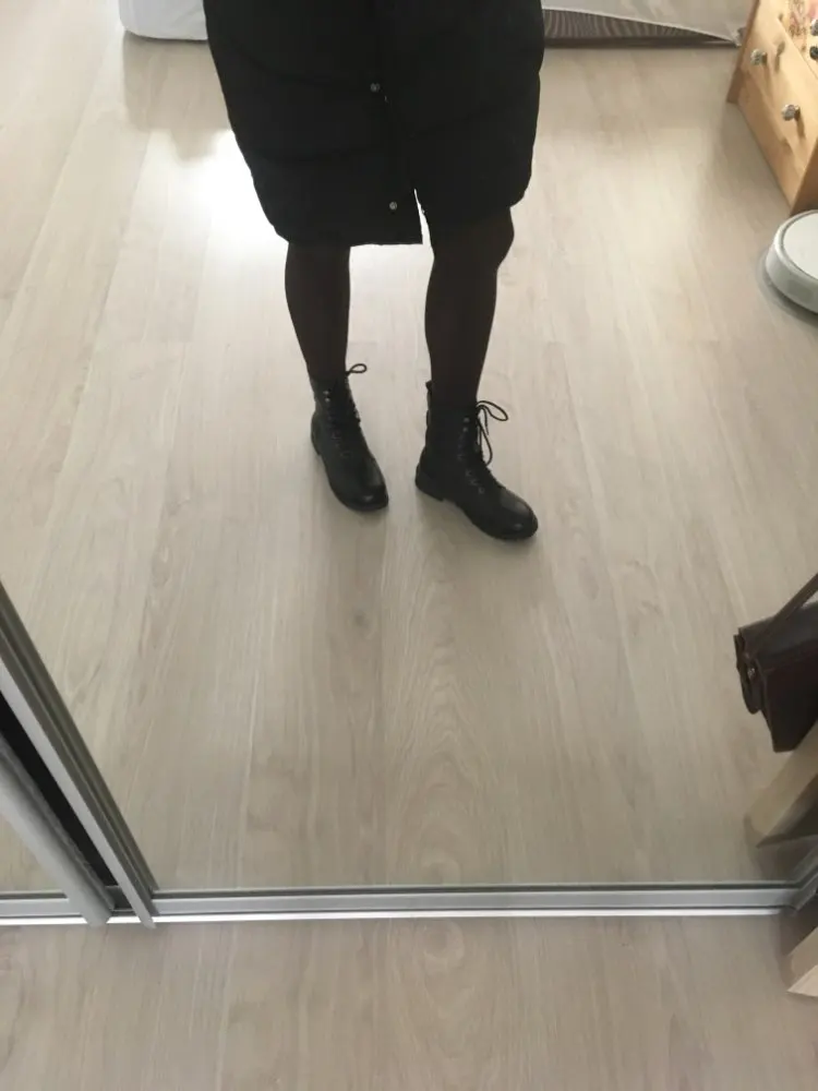 ботинки пришли точно по времени,но без косяков не обошлось.Трек не отслеживался,пришла на почту получить посылку,а оказалось что и ботинки пришли....была сильно удивлена! ботинки пришли с косяками....В одном ботинке есть не проклеянная дырка сквозная!Каблук на другом стёрт....Клей кое-где торчит....Пятна на втором ботинке....Сильно не воняют,выветрились быстро.Упакованы были хорошо,внутри ботинков были воздушные подушки по этому форму не потеряли.Заказала 9.5 размер по стельке 25.5 в притык,немного давили....походила минут 10 и всё нормально.На ноге смотрятся хорошо