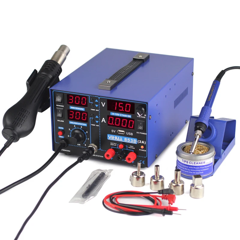 Паяльная станция YIHUA 853D, 2 А, 15 в, USB, 3 в 1