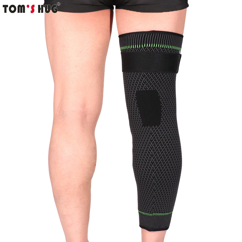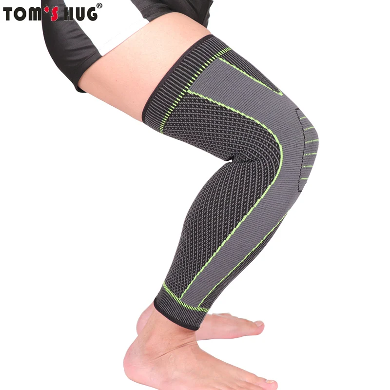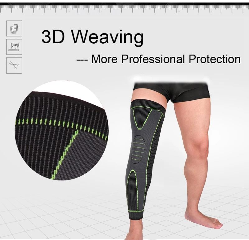 Удлиненные спортивные наколенники, защитные леггинсы для ног, 1 шт., Длинные Зеленые Полосатое облегающее наколенники, Нескользящие теплые наколенники