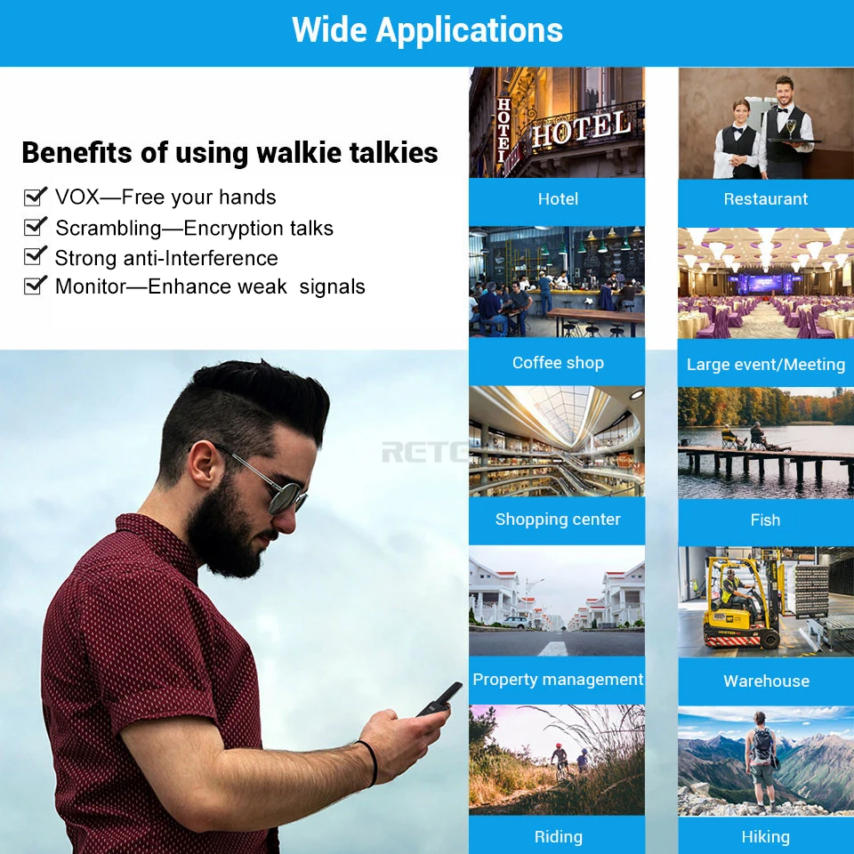 Благодаря Usb-зарядному устройству вы можете заряжать двухсторонние рации Retevis RT15 в любом месте без ограничения для зарядки.