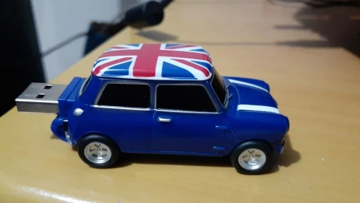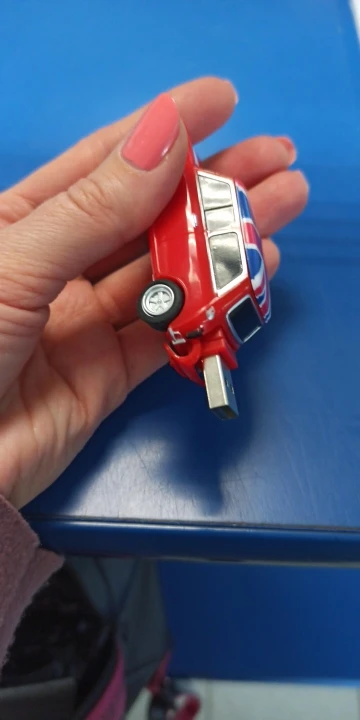 Я люблю это, это супер красиво и очень оригинально, usb находится в багажнике и имеет кнопку внизу, и дверь багажника открывается и выходит, доставка была быстрой, Я купил еще один в красном.