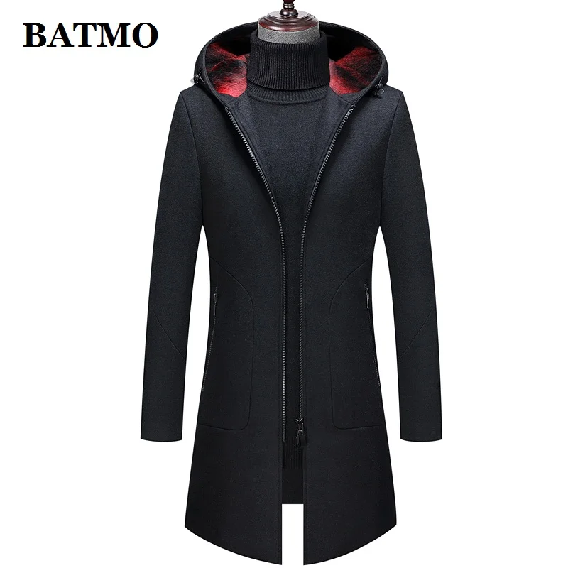 BATMO 2022 Новое поступление осень и весна Высокое качество шерстяное пальто с капюшоном для мужчин, мужские шерстяные куртки, зимнее пальто G9043