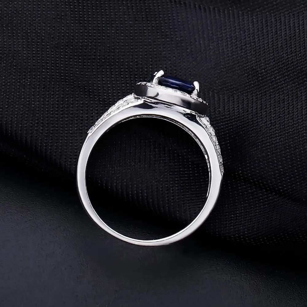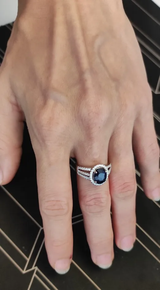 Набор колец из серебра Набор украшений для женщин пробы с натуральным голубым сапфиром 925 карата