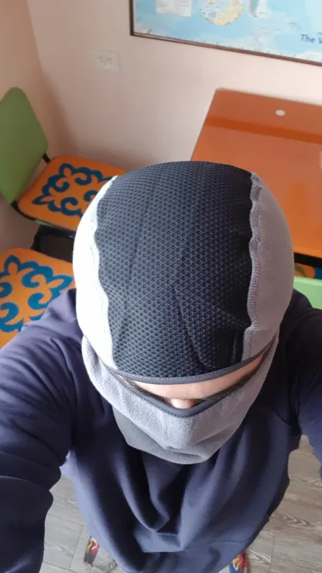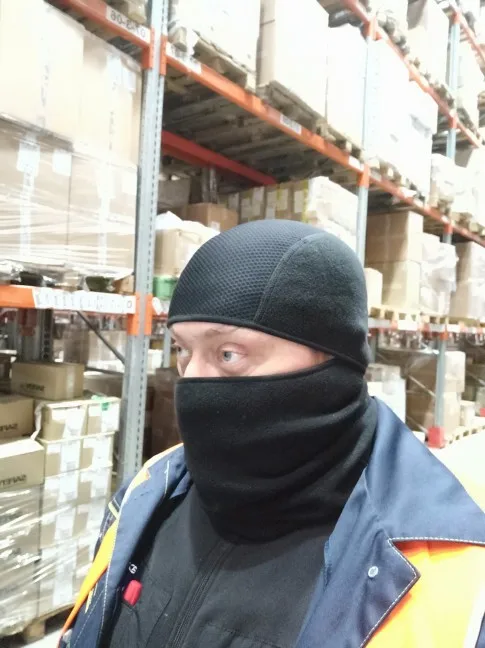 Заказ пришел менее чем за 20 дней. Балаклава понравилась. Работал при - 28 градусах. Воздуха хватает. Лицо не мерзнет. Дыхание теплое. Имеет возможность растягиваться- удобно. Резинка не тугая. На голову и лицо не давит. Ходит в одной Балаклаве можно, если голова не лысая))). При -28- голове холодно(если ходить в одной Балаклаве), т.к верхняя вставка тонкая. Спортивная шапочка надевается на нее без проблем. Шею закрывает. Рекомендую.