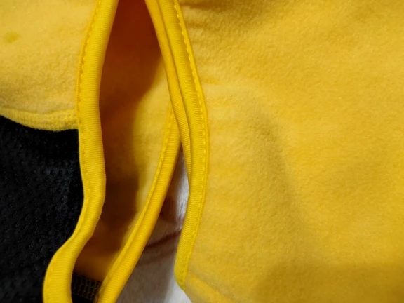 Very good. Its from fleece, like the desription. Its warm and comfortable, suits the face. Just one detail wrong: the thing on the head that lets the air through is sewn a bit to the side, not centered correctly, so it looks a little weird. But overal great product. Came in about a month.