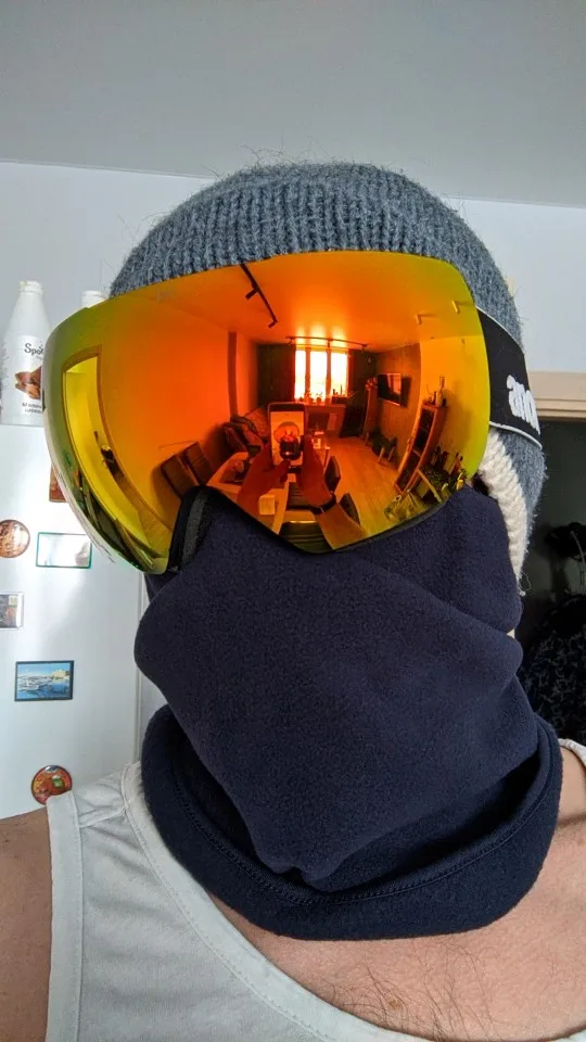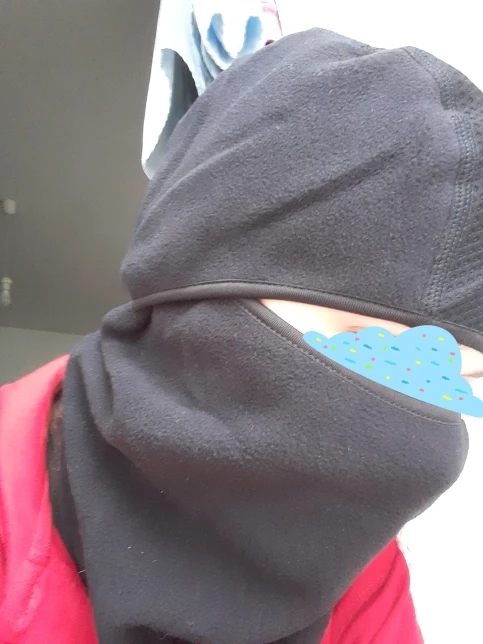 хорошая балаклава, нижняя часть опускается и лицо открыто, как будто шапка с шарфом! прикольная