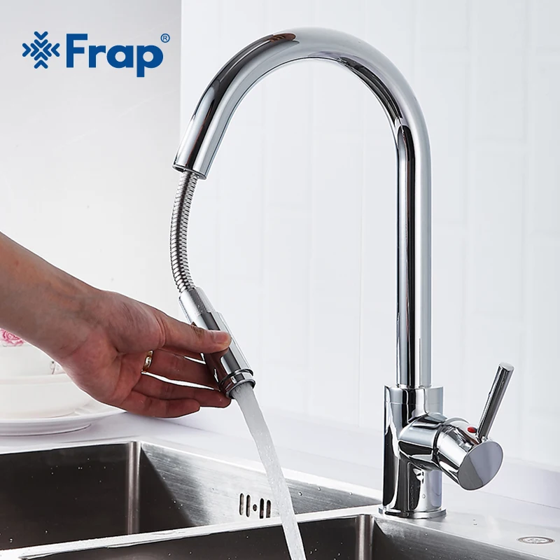 Frap матовый никелевый смеситель для кухонной раковины, латунь, вращение на 360 градусов, вытяжной кран для распыления воды на выходе, смеситель с одной ручкой Y40070