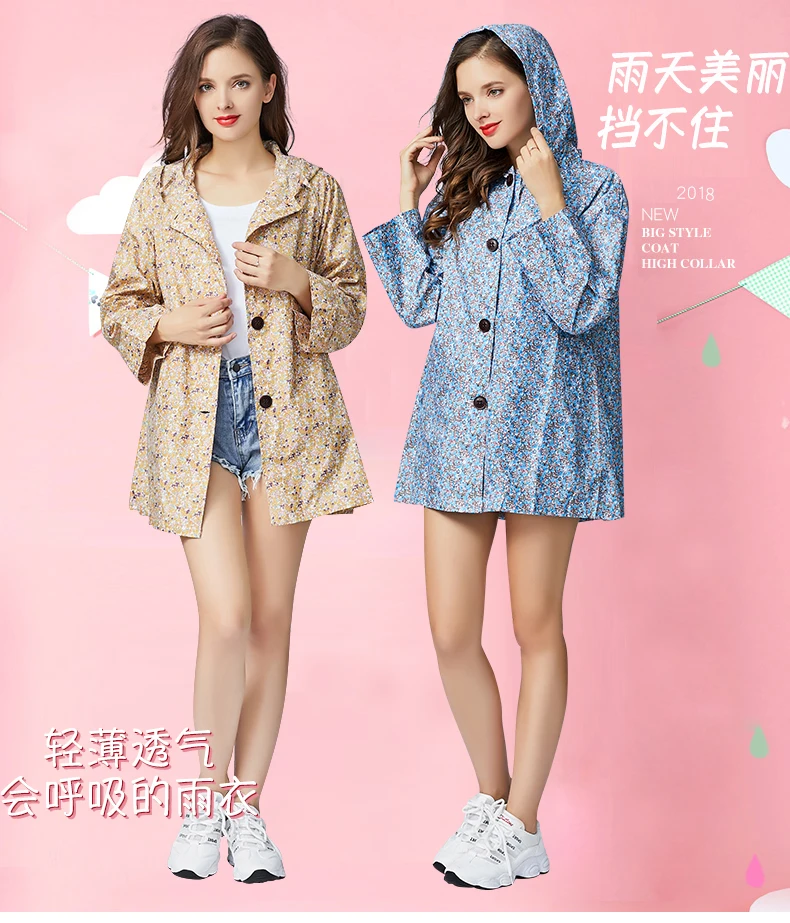 Женский стильный короткий непромокаемый плащ с капюшоном и маленьким цветочным принтом