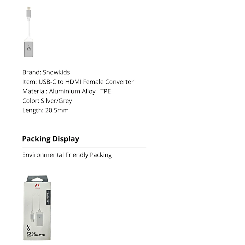 Адаптер Snowkids с USB C на HDMI, портативный адаптер типа c папа на HDMI мама для Macbook Huawei P20 Samsung S8
