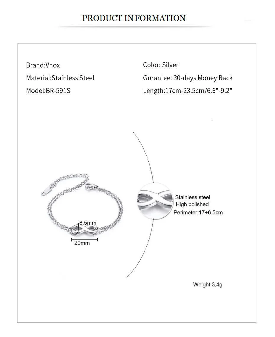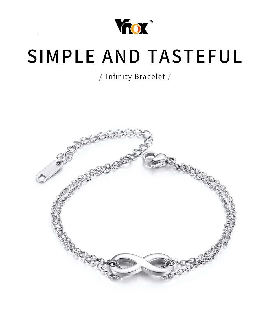 Vnox темпераментные браслеты с кулоном в форме бесконечности для женщин из нержавеющей стали звенья цепи простые элегантные женские вечерние ювелирные изделия Регулируемые