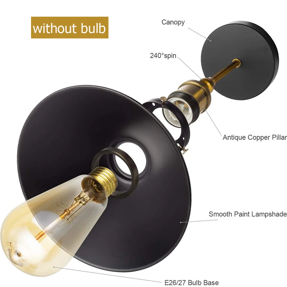 Чёрный цвет, промышленные настенные светильники ZhaoKe для лофта, винтажный прикроватный настенный светильник, металлический абажур, лампы Эдисона E27 110 В220 В