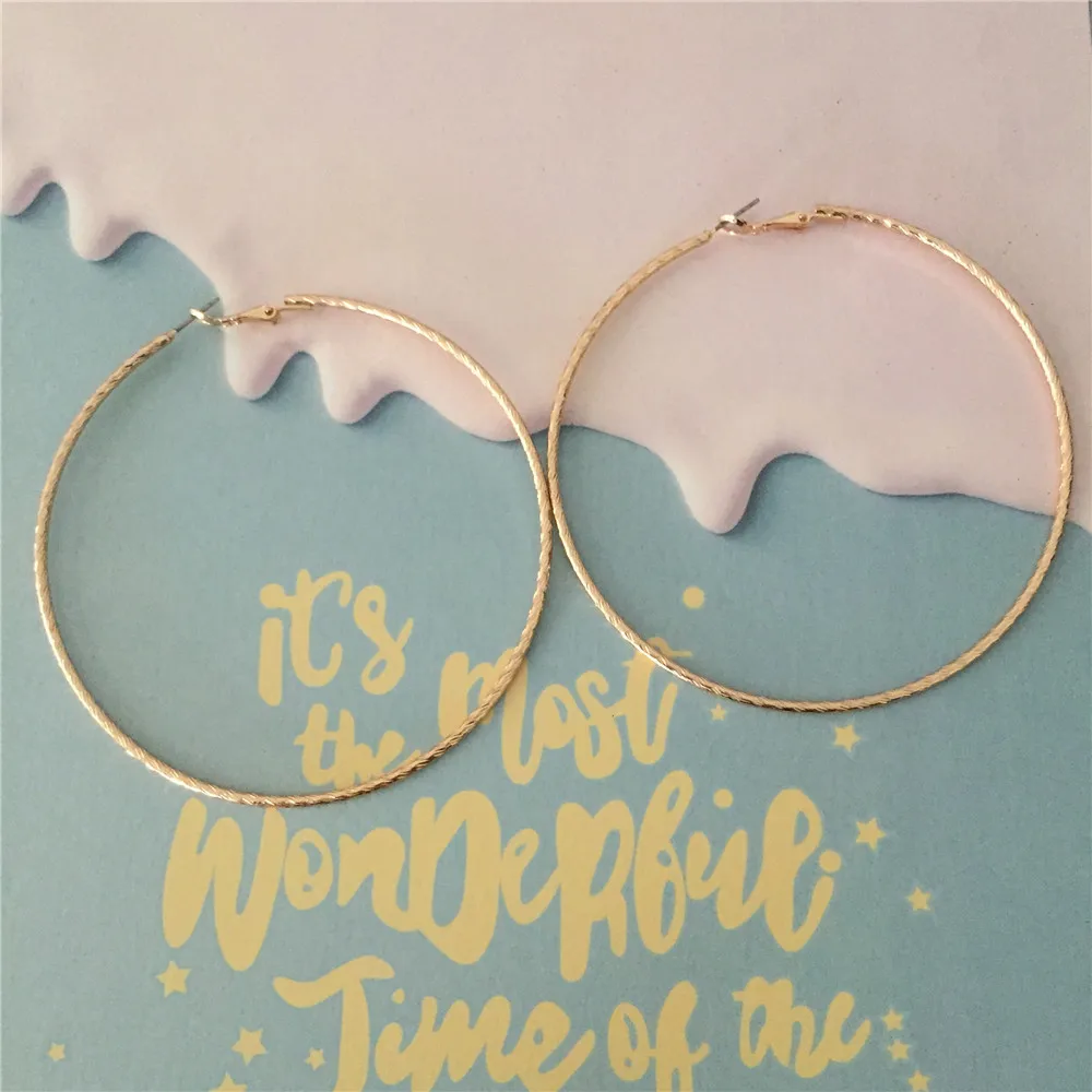 Простые базовые Позолоченные текстурированные серьги-кольца диаметром 85 мм для женщин и девушек, элегантные великолепные повседневные ювелирные аксессуары