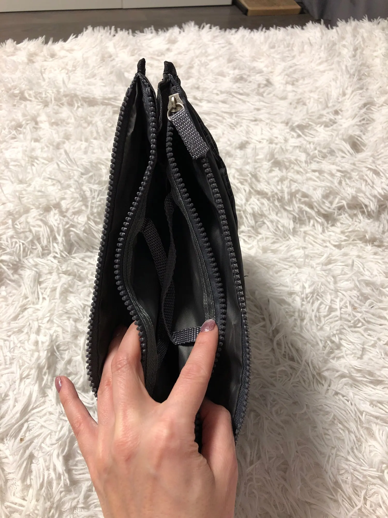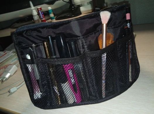 Товар пришёл очень быстро. Удобно пользоваться, беру с собой в поездки, вся удодовая косметика, лекарства и дек. косметика помещается