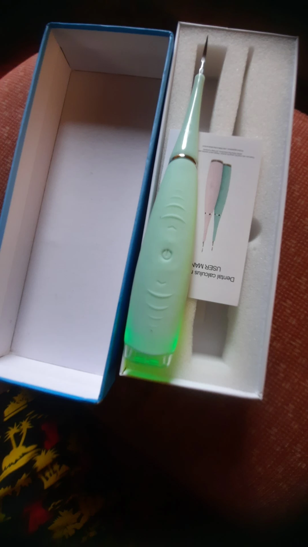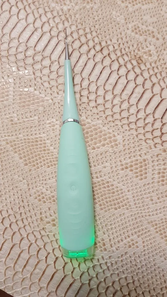Устройство работает, удаляет масштаб между зубами. Необходимо настаивать в течение длительного времени и старые весы внутри рта необходимо небольшое зеркало для стоматолога, чтобы увидеть работу. Старые слои сложнее удалить, это нормально. Видеть во времени с привычкой, если это проще