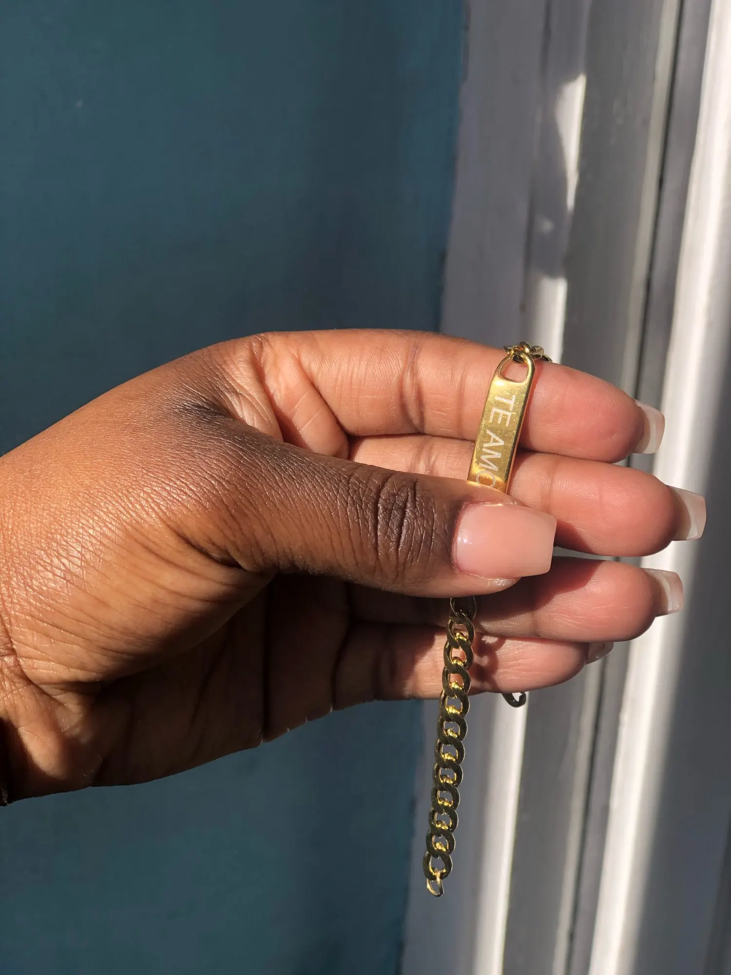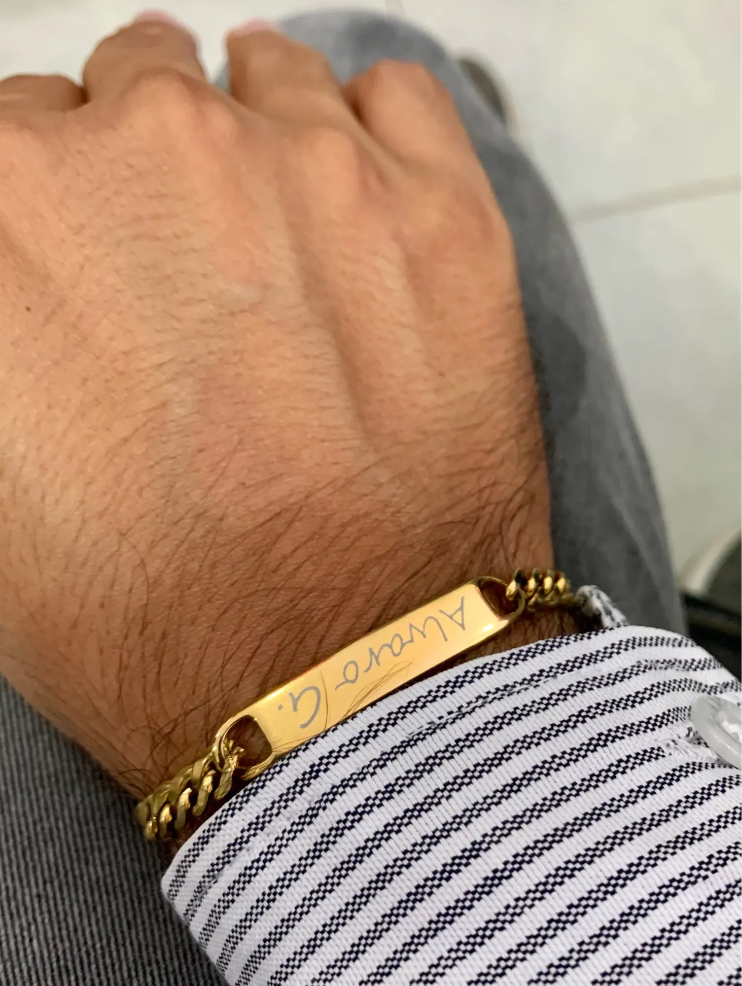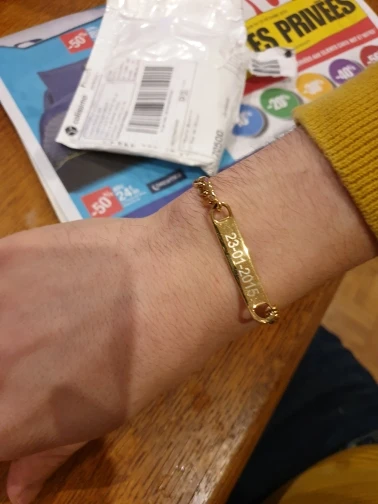 Me ha gustado mucho, aun no se si se le irá pronto el dorado ya que no me la he puesto. El mensaje es el que queria, quizas me hubiera gustado un poco mas oscuro. Es un poquito grande para mi muñeca, pero se puede ajustar sin problema. Calidad precio muy recomendable. Tardo unos 22 días en llegar.