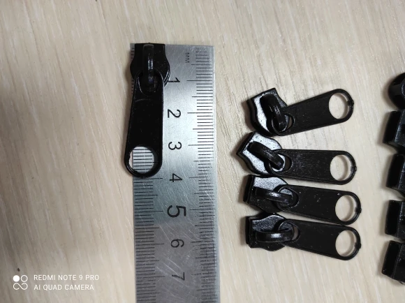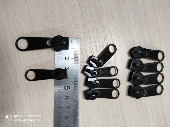 Хороший бегунок, размер указан внутренний в миллиметрах, металл достаточно мягкий, не ломается, минус только краска легко отходит