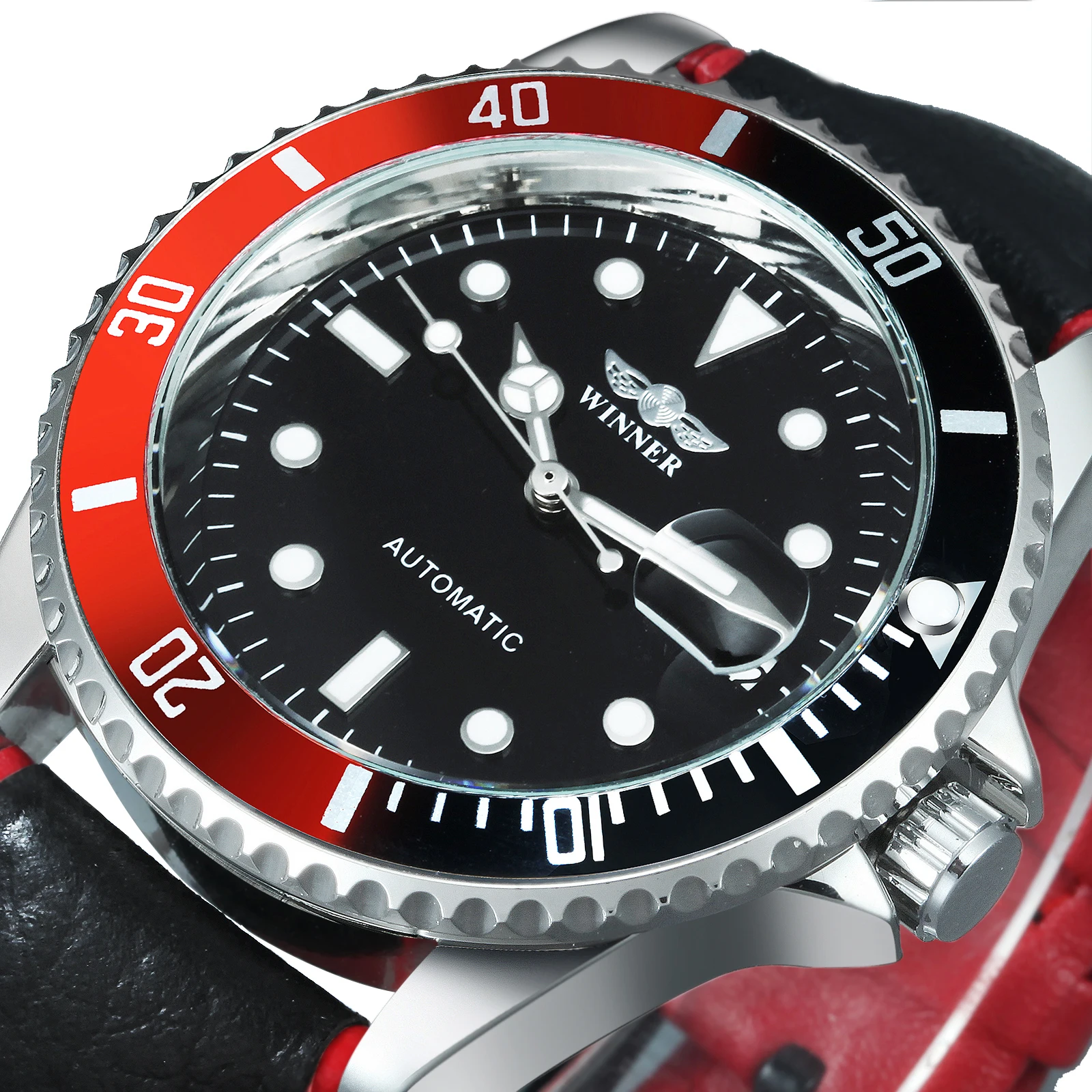 Часы наручные WINNER Мужские механические, брендовые Роскошные автоматические с кожаным ремешком, с календарем, контрастные цвета, 2020
