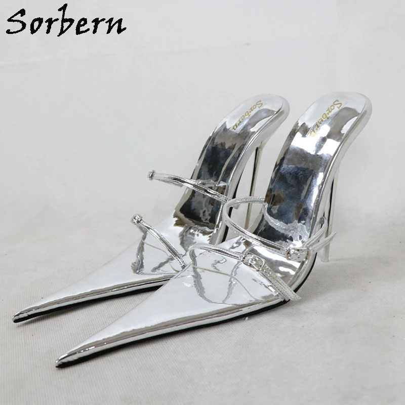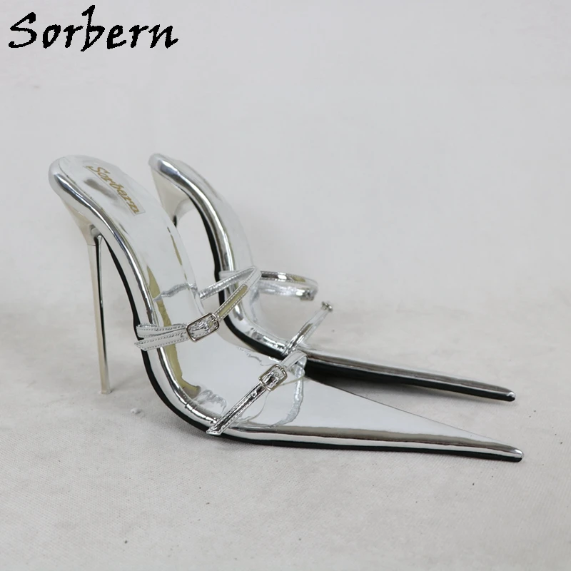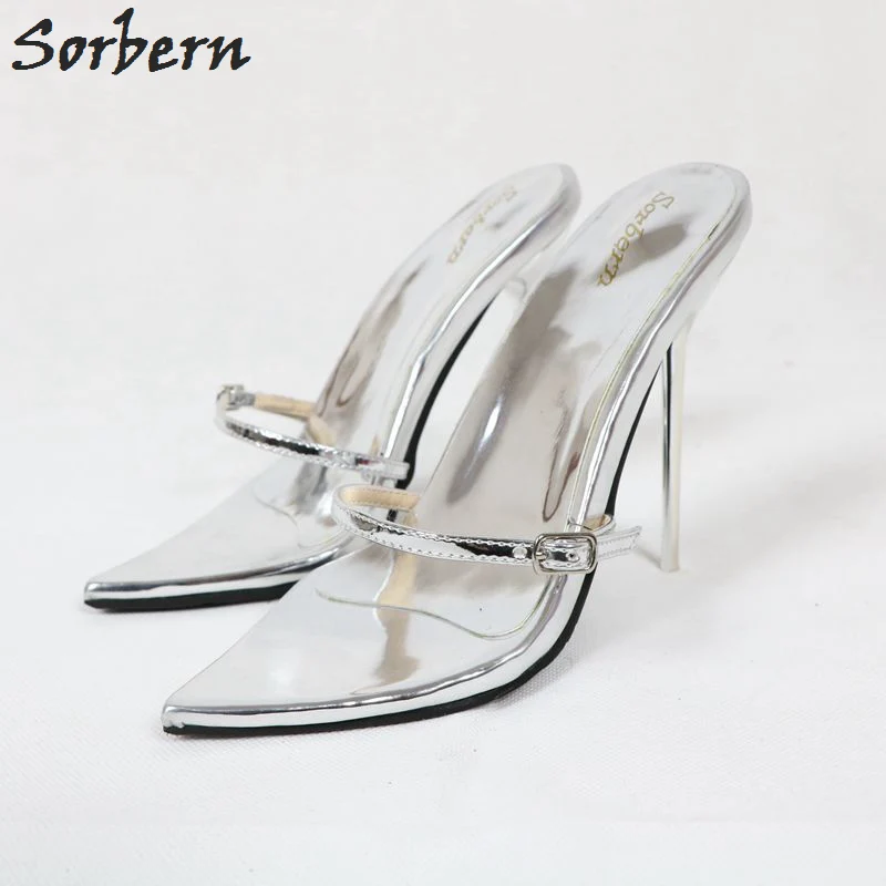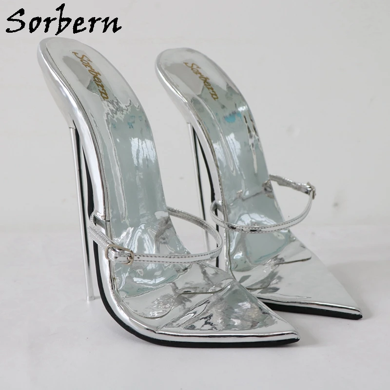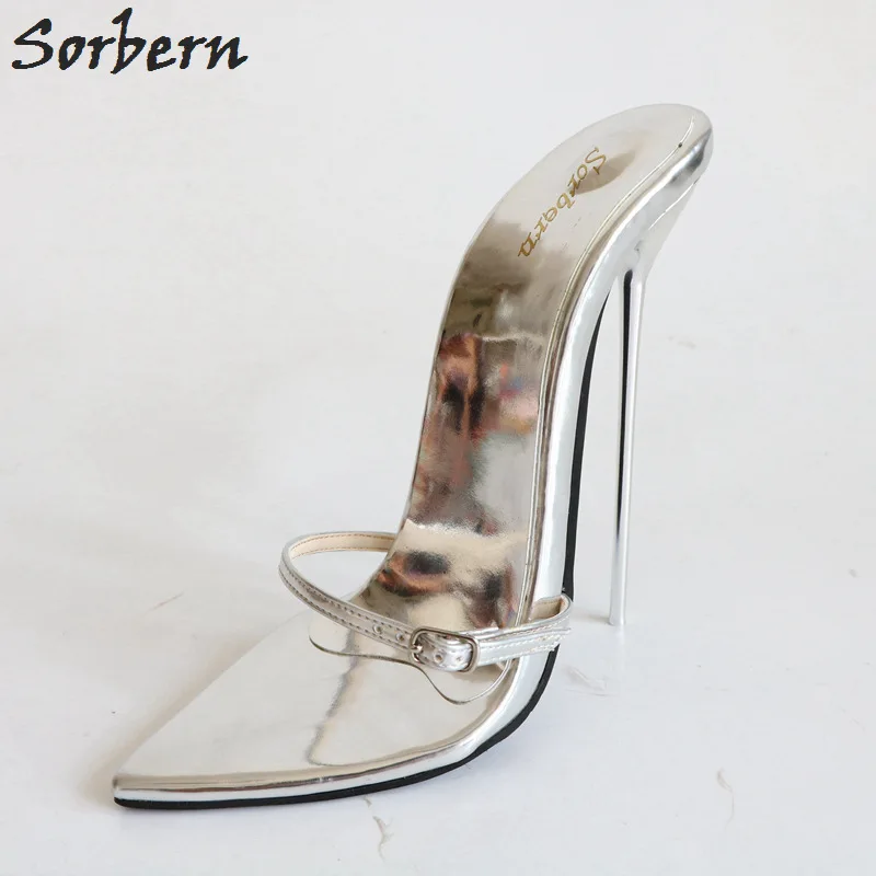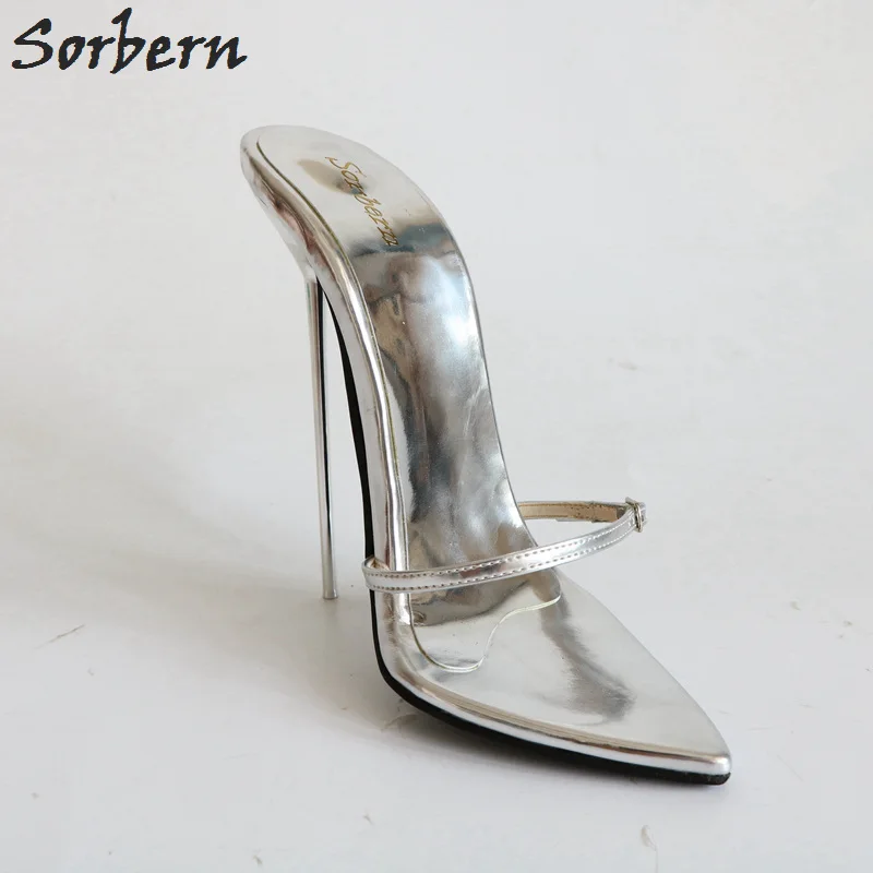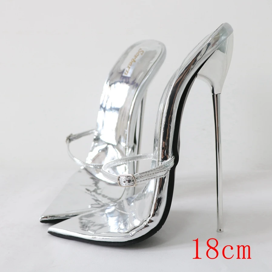 Женские шлепанцы на очень тонком металлическом каблуке 12 см, 14 см, 16 см