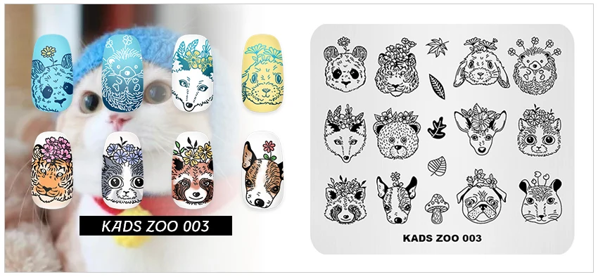 Пластины для стемпинга KADS Zoo 003, штамп для ногтей, изображение лисы, тигра, маникюрный шаблон, трафарет для ногтей, шаблоны, штампы для украшений