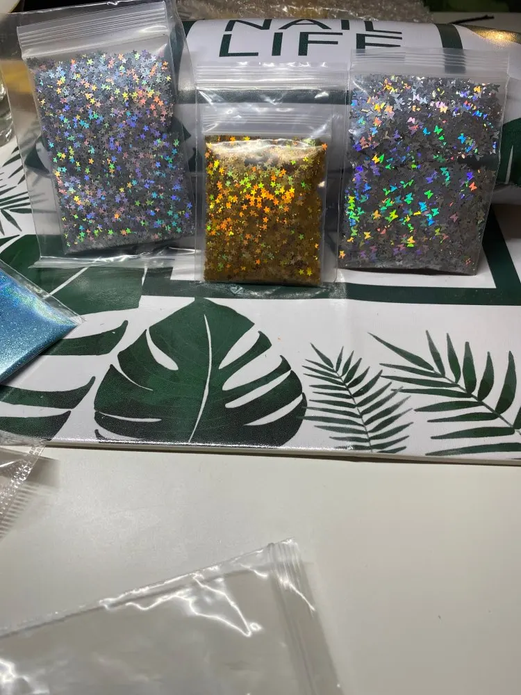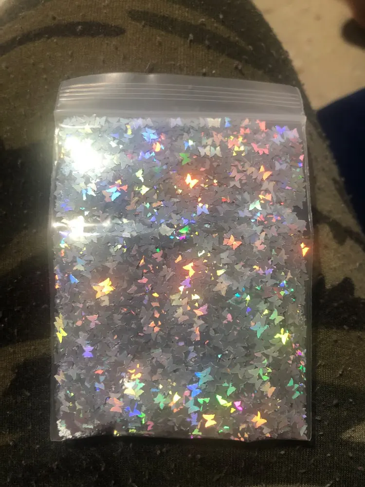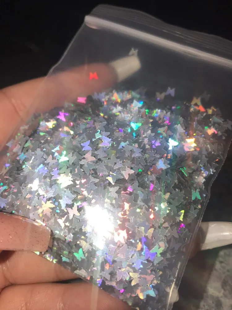10 гсумка серебряное золото голографический блеск 3 мм микро звездаБабочка Форма смешанный акриловый лазерный блеск для дизайна ногтей украшения LS2356
