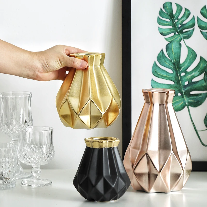 Ваза из розового золота в скандинавском стиле, современный простой фарфоровый горшок с растениями, элегантный домашний Свадебный декор, лучший подарок