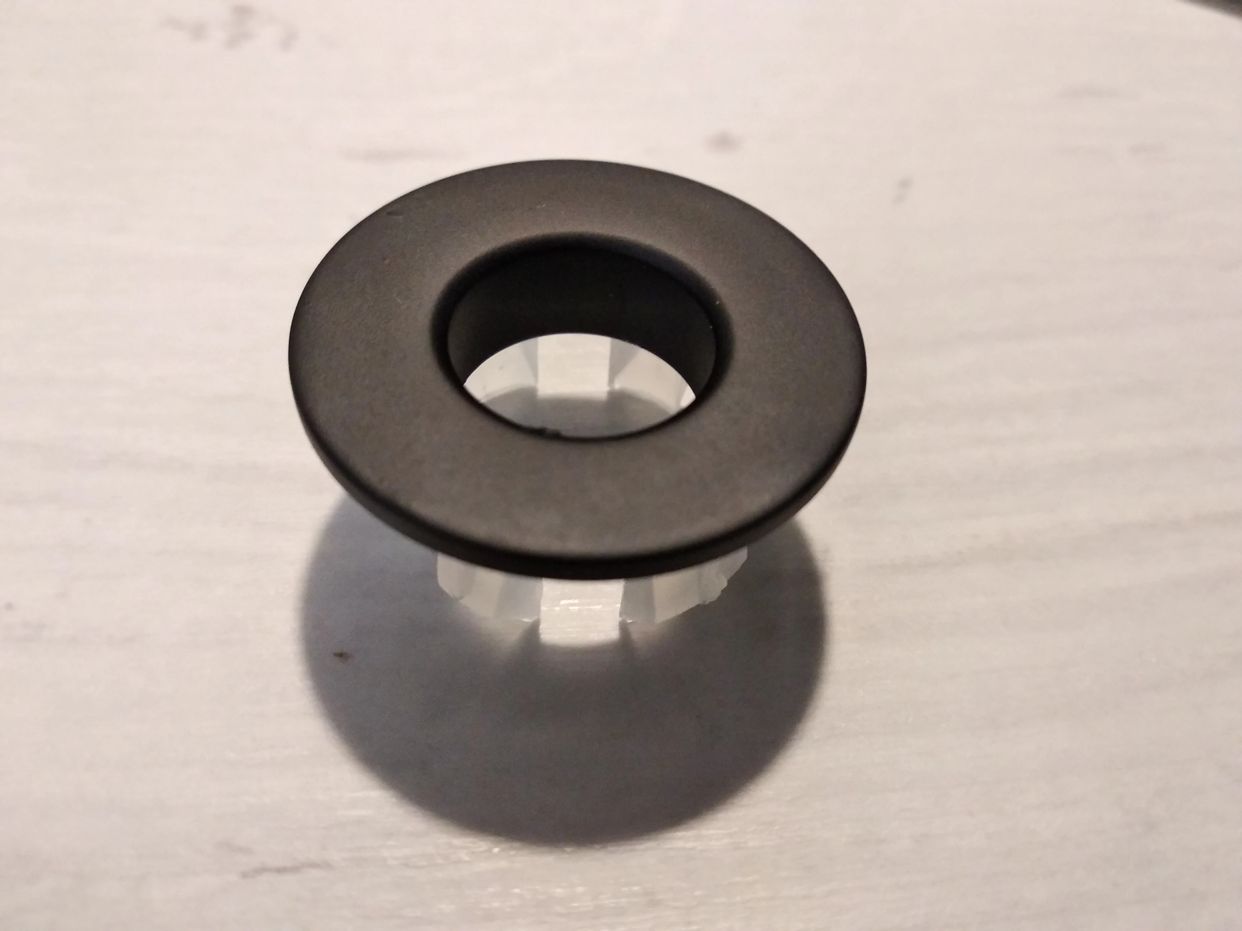 Доставка в Харьков за 23 дня в отделение НП. Пластиковая вставка немного прослаблена для отверстия в раковине... Пришлось немного разогнуть усики, поместив в кипяток. И без подмотки изолентой, как пишут в отзывах. На клей бы еще посадили. ))) И отверстие самого кольца поменьше. Но не критично. Однозначно, лучше, чем облазящий со временем пластик.))) Рекомендую!