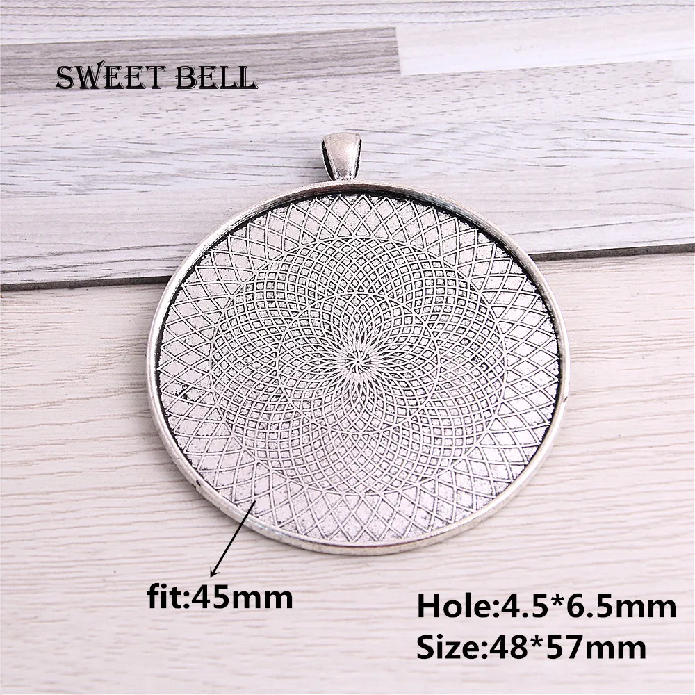Сладкий колокольчик10 шт. 45 мм Круглая Подвеска Кабошон стеклянный кабошон настройки DIY аксессуары для ювелирных изделий металлические круглые подвесные украшения в поисках 6A934