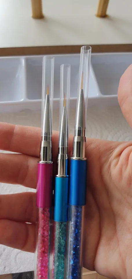 Кисти очень хорошие и отличные, чтобы сделать тонкие линии, искусство ногтей более тщательно, потому что тонкие, а не мы снимаем толщину. Пожалеете только о задержке получения 11/ 11/2020 и получил 18/02/2021