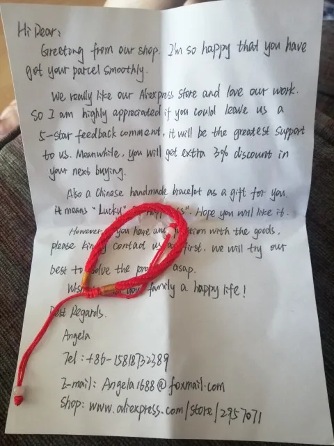 Продавец дал подарок, красный китайский браслет, большое спасибо