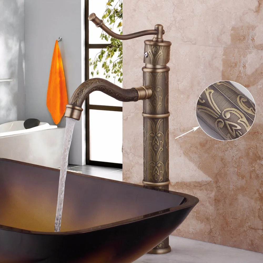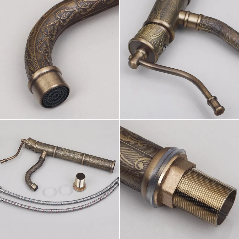Высокий смеситель для ванной комнаты Monite, античный латунный Смеситель для раковины в ванной комнате, смеситель с одной ручкой, смеситель для раковины